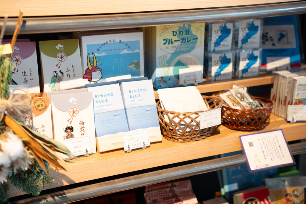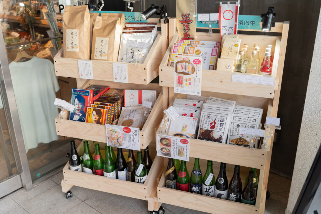 さらに、店内には滋賀の特産品を集めたセレクトショップも併設されていて、信楽焼の器や郷土食、おみやげにもぴったりな加工食品や地酒がずらり。