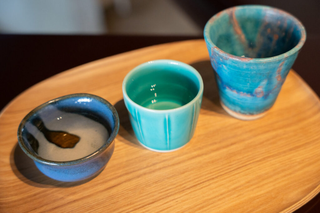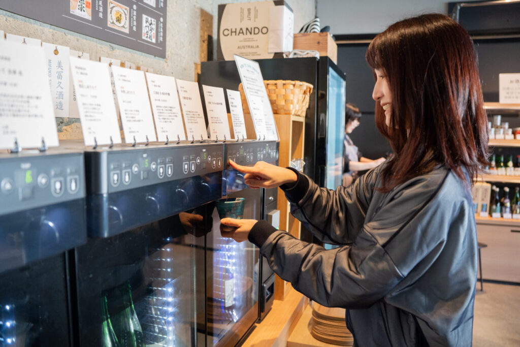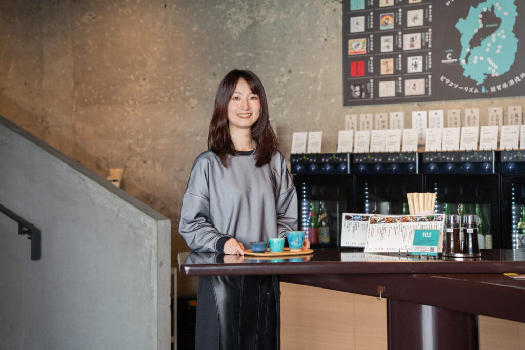 信楽焼や、唐橋焼といった、地元琵琶湖が連想するブルーのおちょこを選び、自分でサーバーから注ぐという体験は、まるで“日本酒のテーマパーク”に来たかのよう。