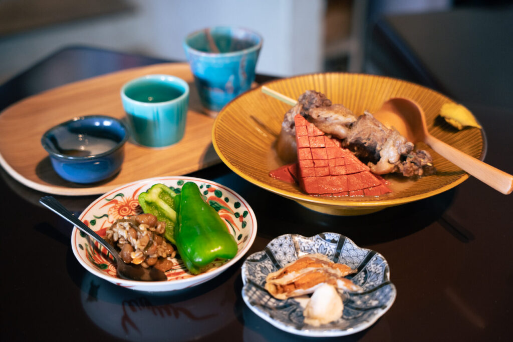 滋賀名産の赤こんにゃくも食べ応えあり、玉子は黄身までじんわり出汁が沁みていて、どの具材も主役級の仕上がり。