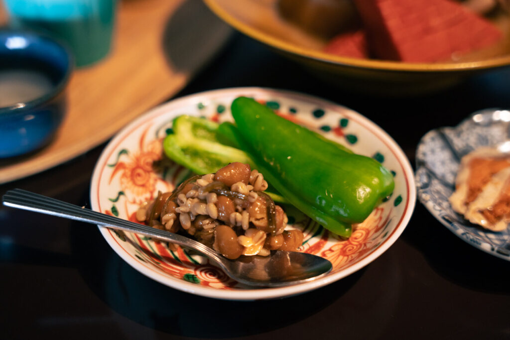 納豆というより、“なめ味噌”のようなコクと甘みがあり、そこにピーマンのシャキシャキ感とほろ苦さが加わって、一気に大人の味わいに。