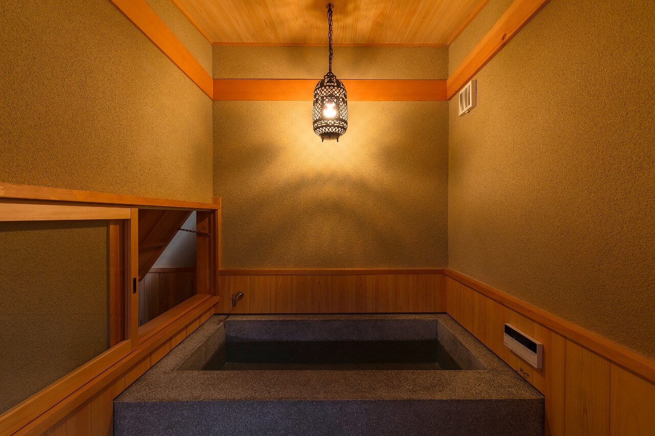 職人によって仕上げられた研ぎ出しの大きな浴槽は、贅沢の極みです。