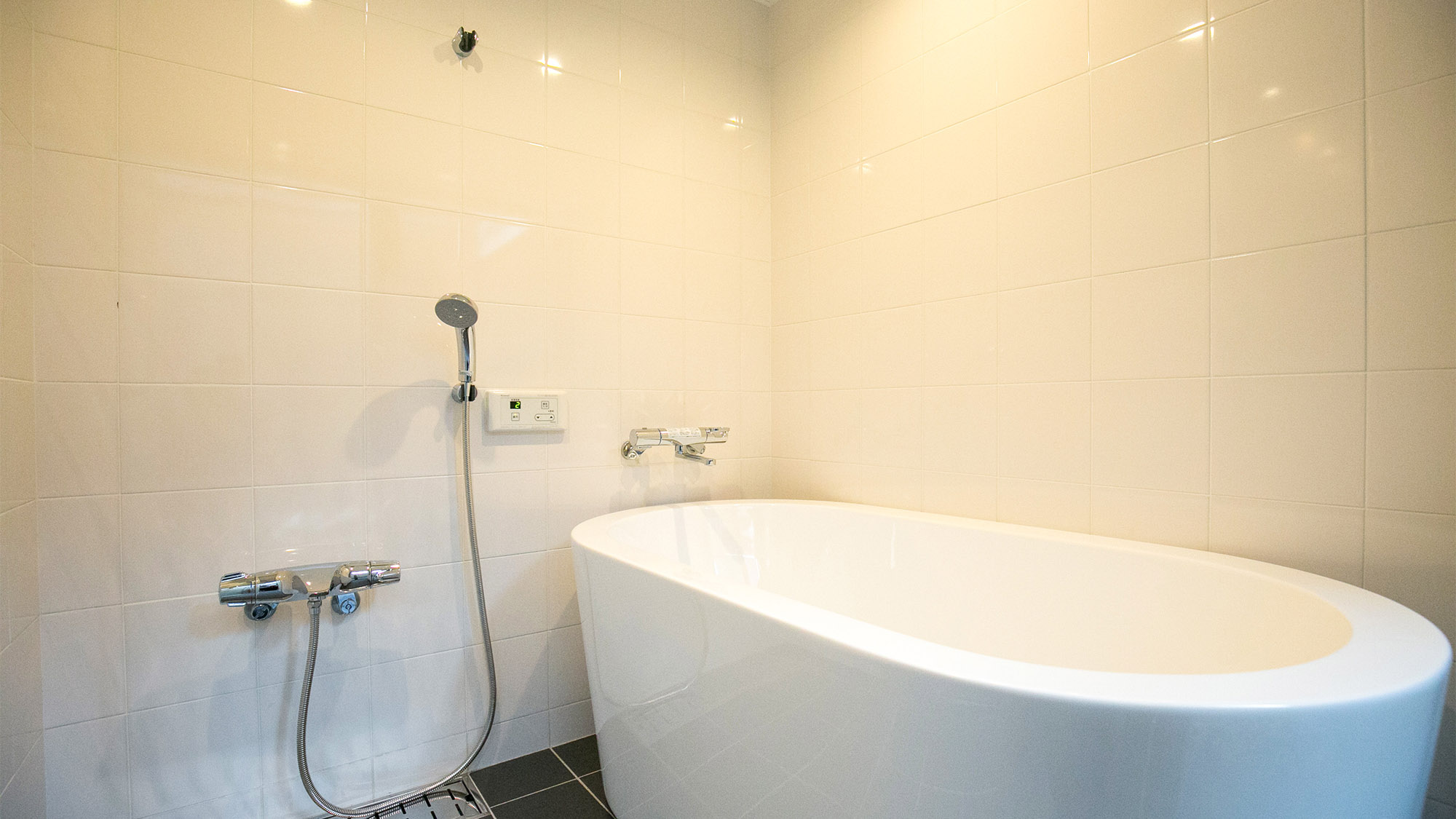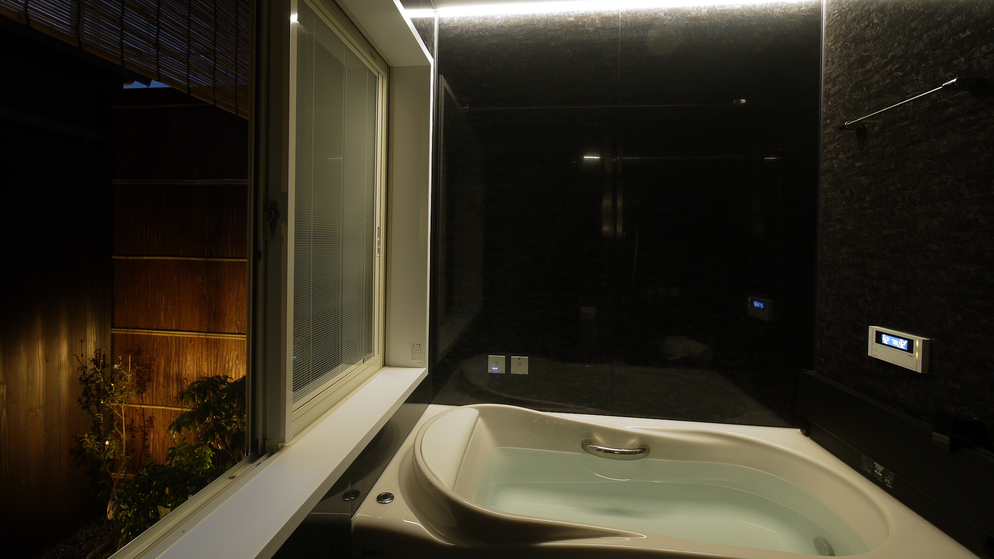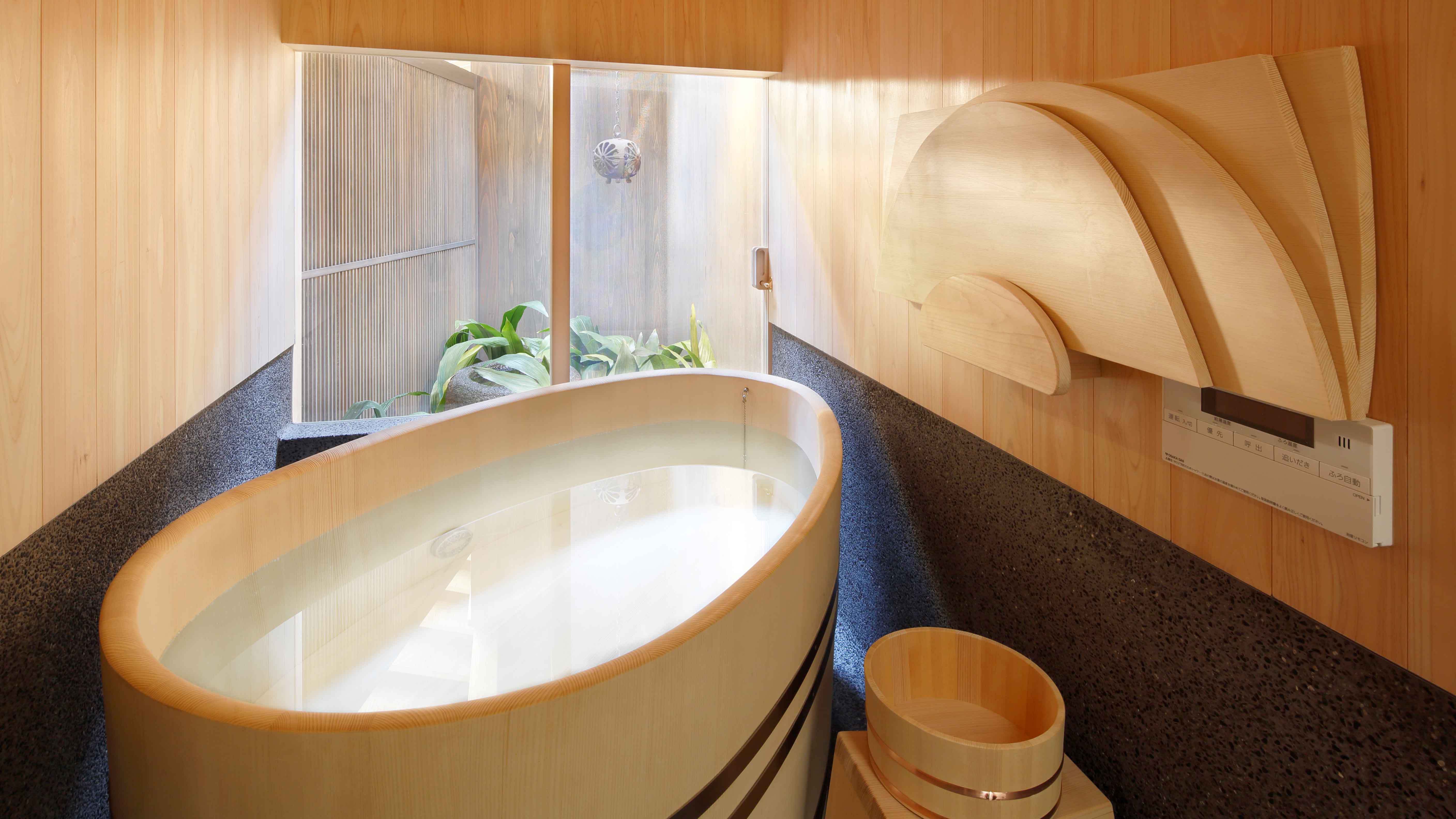 竹や木材のナチュラル感が好ましいインテリアの中でも、特筆すべきは浴室。