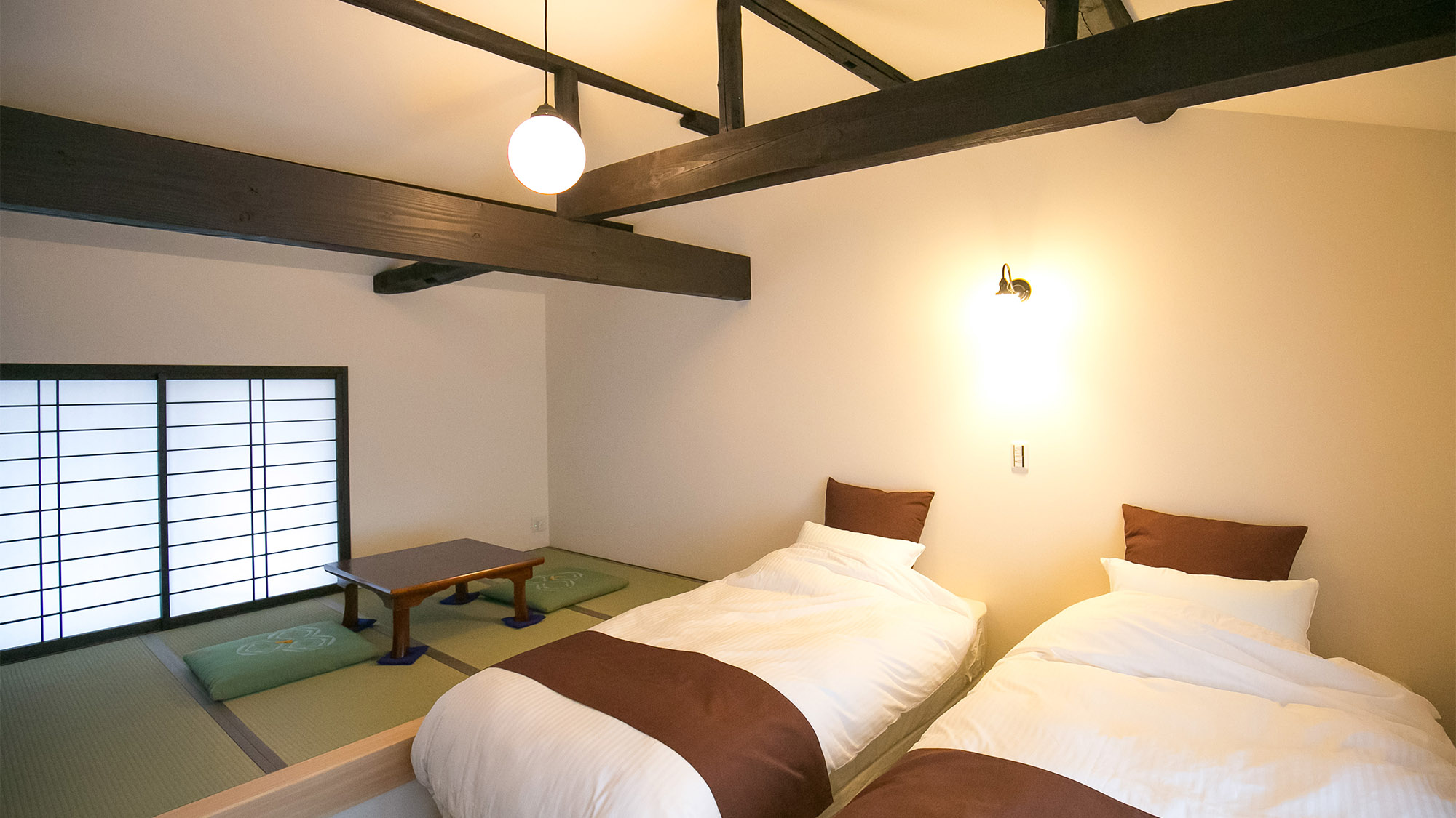 2階の洋室にはベッドもあり、ご高齢の方も安心して泊まれるのが嬉しいところ。