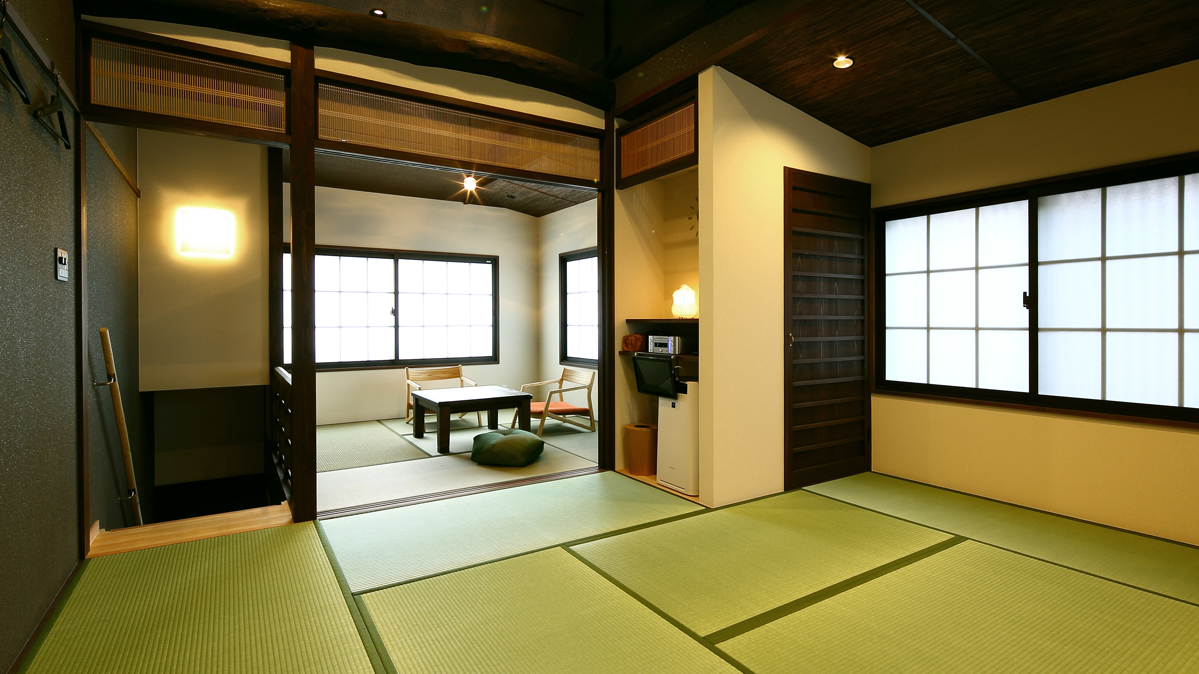 外観は典型的な京都の町家ながら、部屋は開放感を感じる広さ。