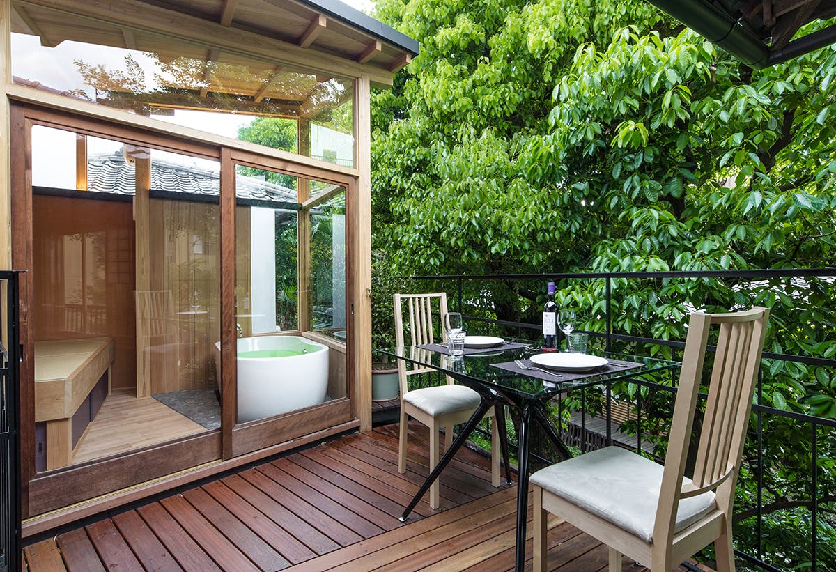 京都らしい坪庭や祇園を見下ろせるバルコニーも、Machiya Maya Gionの魅力です。