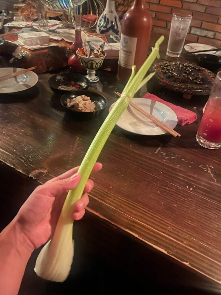 店主が仕込みをしていて、それを見ていた誰かが手伝い出して、気づけばお店にいたみんなの手にセロリが渡っていた。