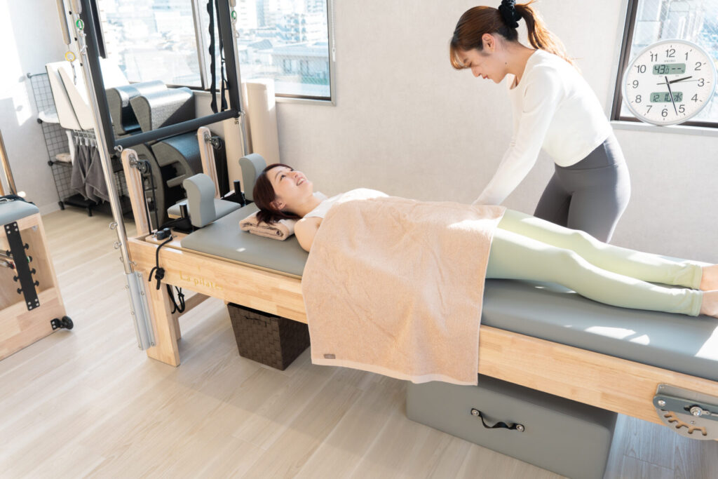 整体で身体のゆがみや関節の可動域を丁寧に整えたあとに、マシンピラティスでインナーマッスルへ効率よくアプローチ。