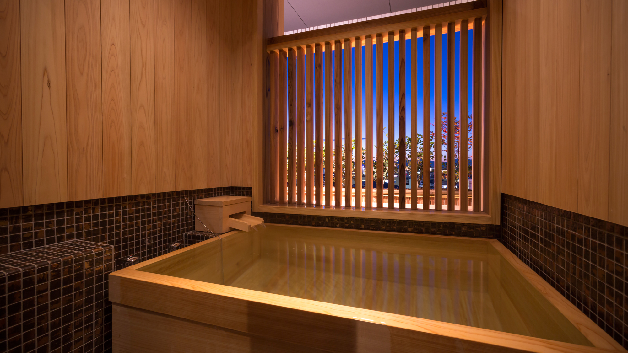 客室には、日本らしさを感じることの出来る畳敷きのスペースや、桧の香りに癒される桧風呂が備わっています。