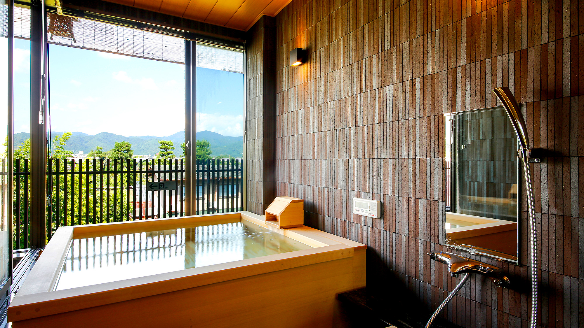 京都の風情ある街並みを眺めながら、半露天風呂に浸かって、心身ともに疲れを取る時間は、まさに至福の時間です。