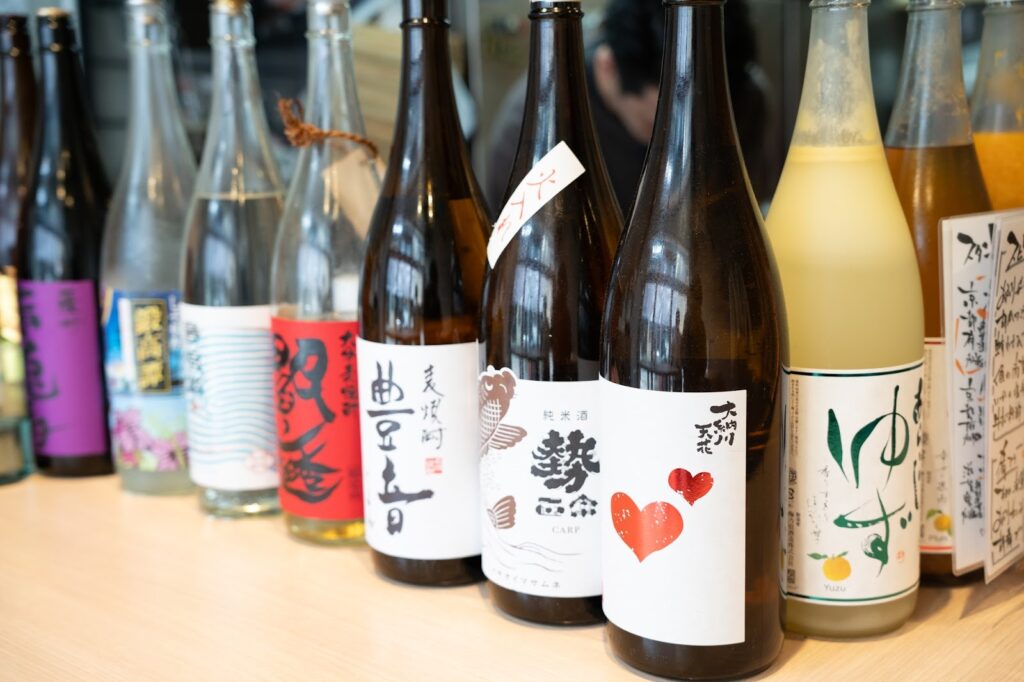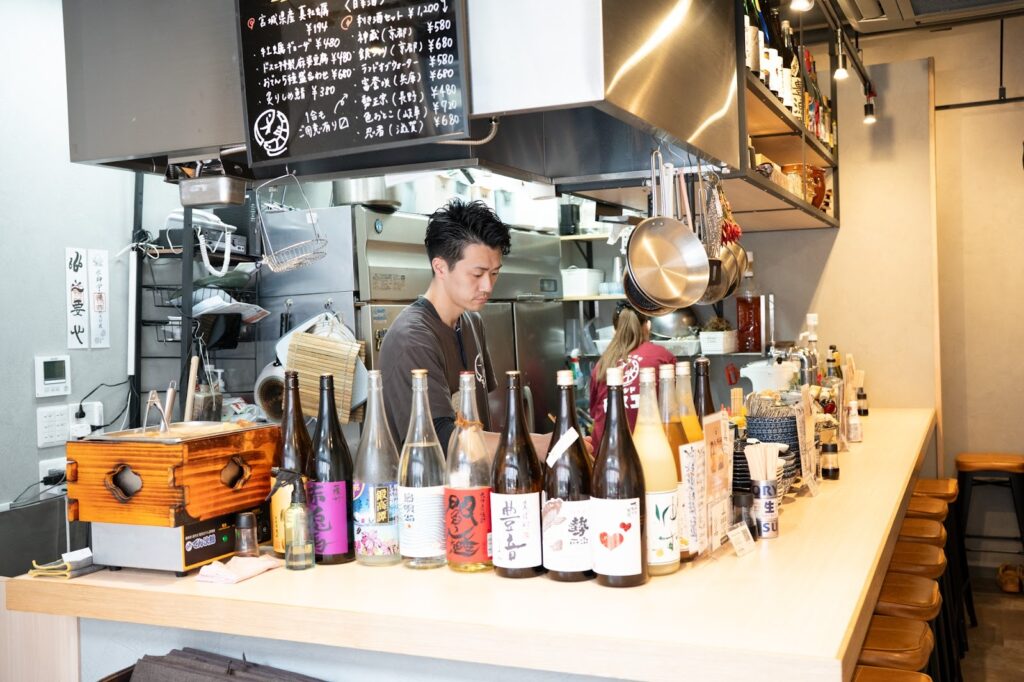 カウンターには、料理に合うようにと店主・二ノ宮さんが厳選したお酒がずらり。